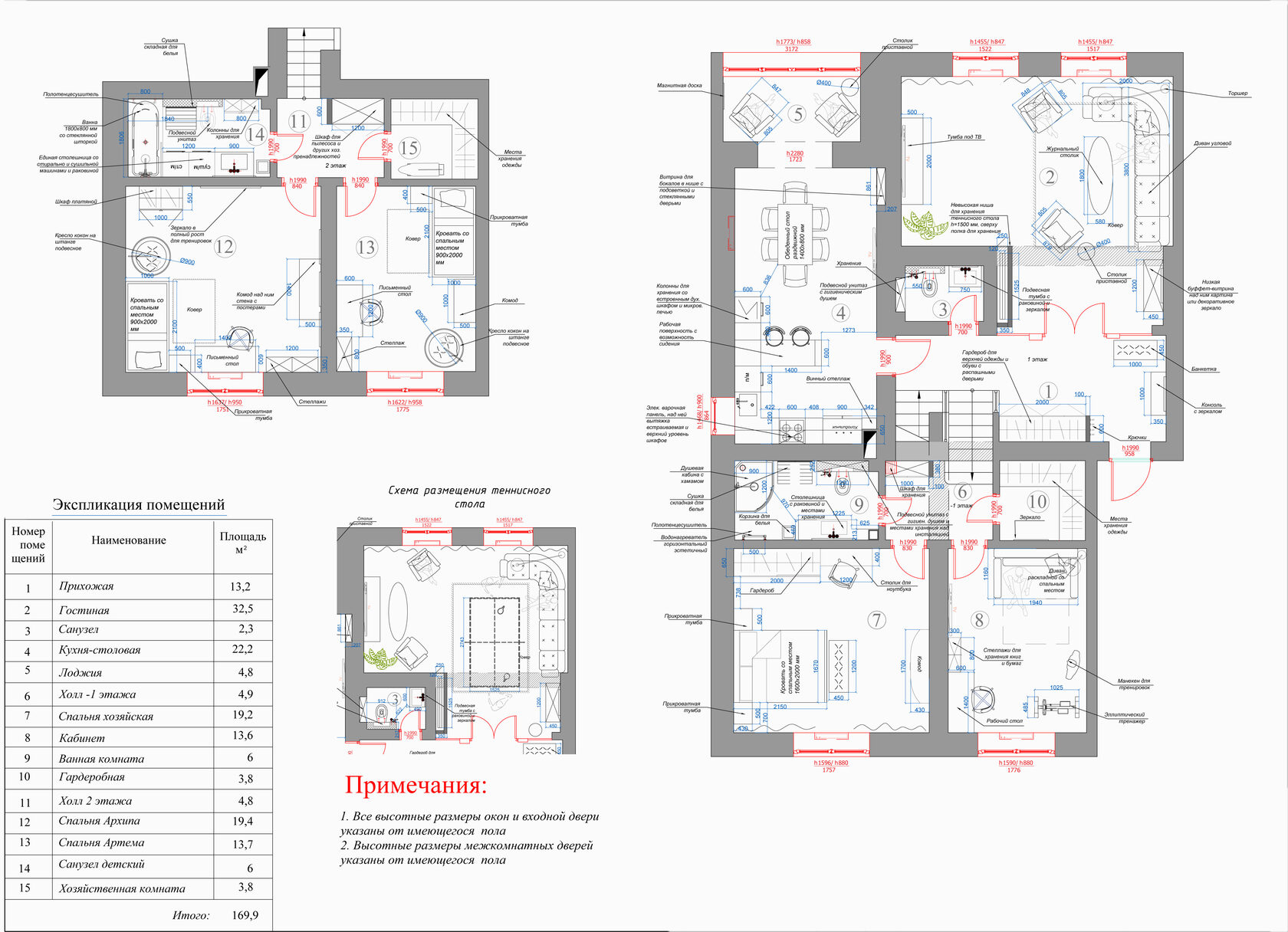 Несколько вариантов планировок с детальной проработкой предметного наполнения
